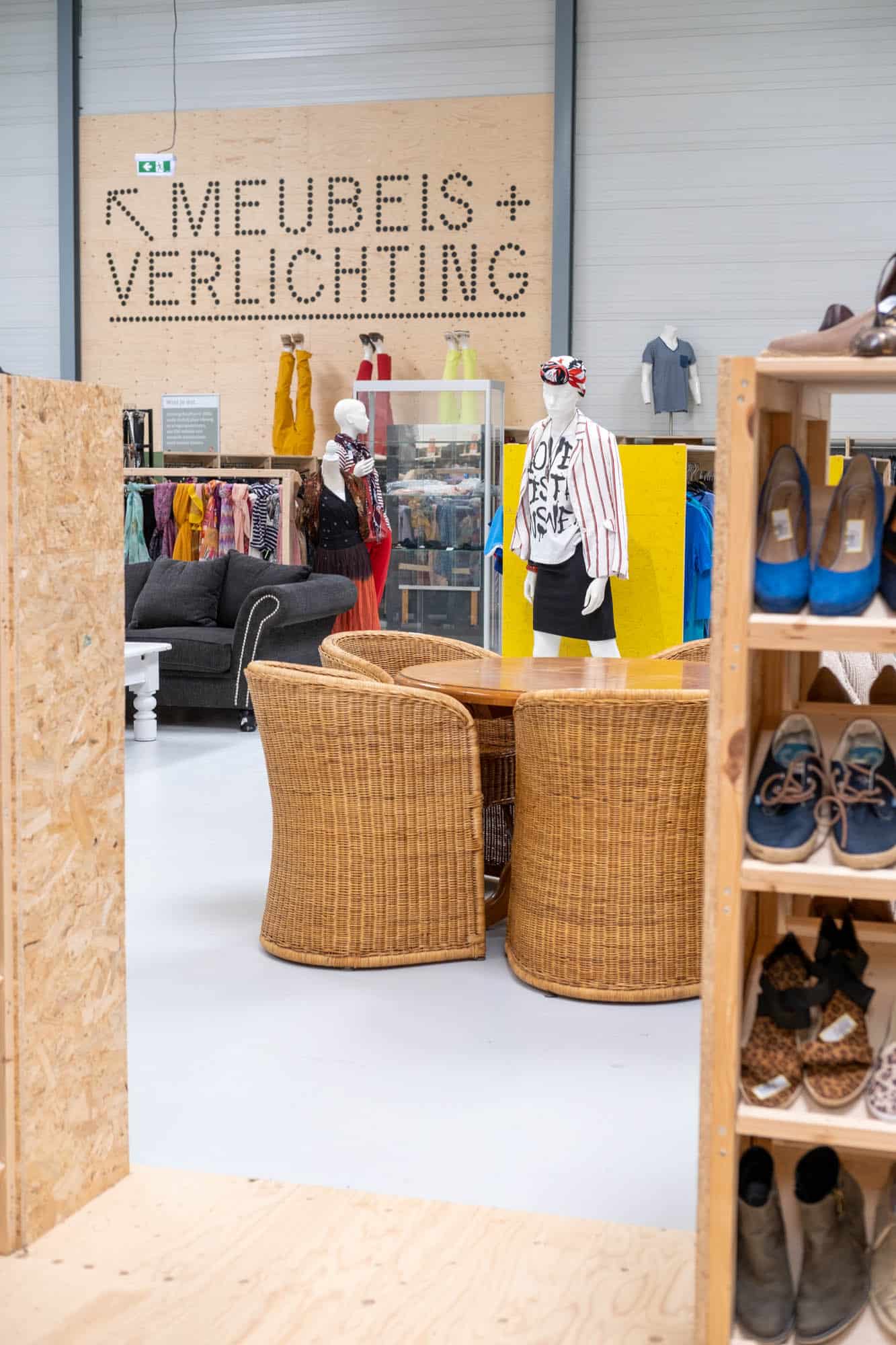 In het grote pand is de koopwaar overzichtelijk in categorieën verdeeld. Je kunt hier o.a. terecht voor platen, meubels en interieuraccessoires. Het kledingaanbod vind ik het leukst. Veel mooie dameskleding, waaronder merken als Sissy-Boy, Vero Moda en veel H&M. Er is ook een rekje met merkkleding, maar daar hangt ook gewoon Lindex tussen met een wat hoger prijskaartje. Neem dus vooral de tijd om lekker de rekken met gewone kleren door te spitten.