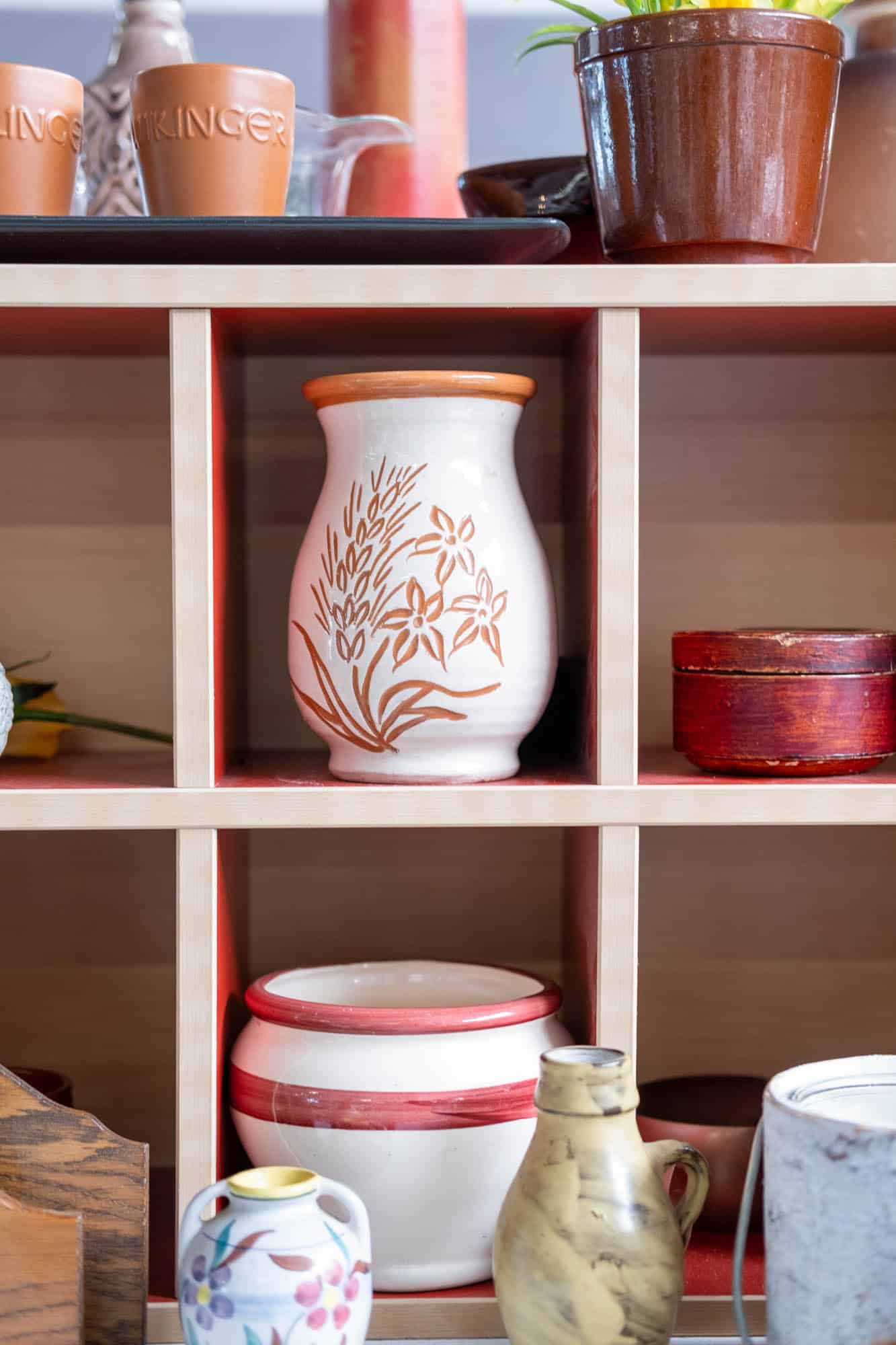 Het leuke aan deze tweedehands shop is dat ze heel veel items keurig op kleur hebben uitgestald. Zeker in de witte kasten achter in de winkel zie je in een oogopslag waar de woonaccessoires in jouw favoriete kleuren te vinden zijn.