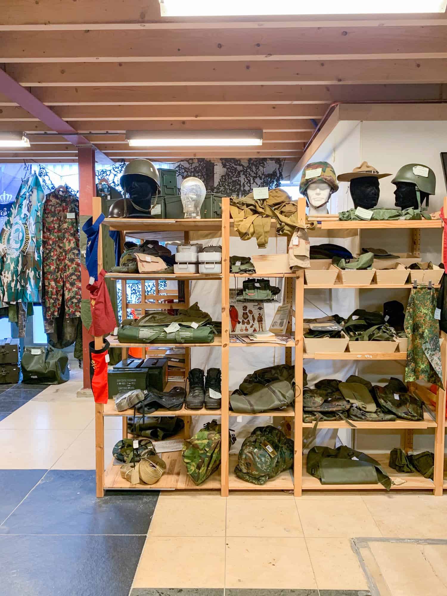 Er zijn twee ruimtes boven: een voor dames- en herenkleding (met veel Aaiko, Vero Moda en C&A) en een voor boeken en lp’s. Beneden is een legerdump hoekje gemaakt voor de liefhebber.