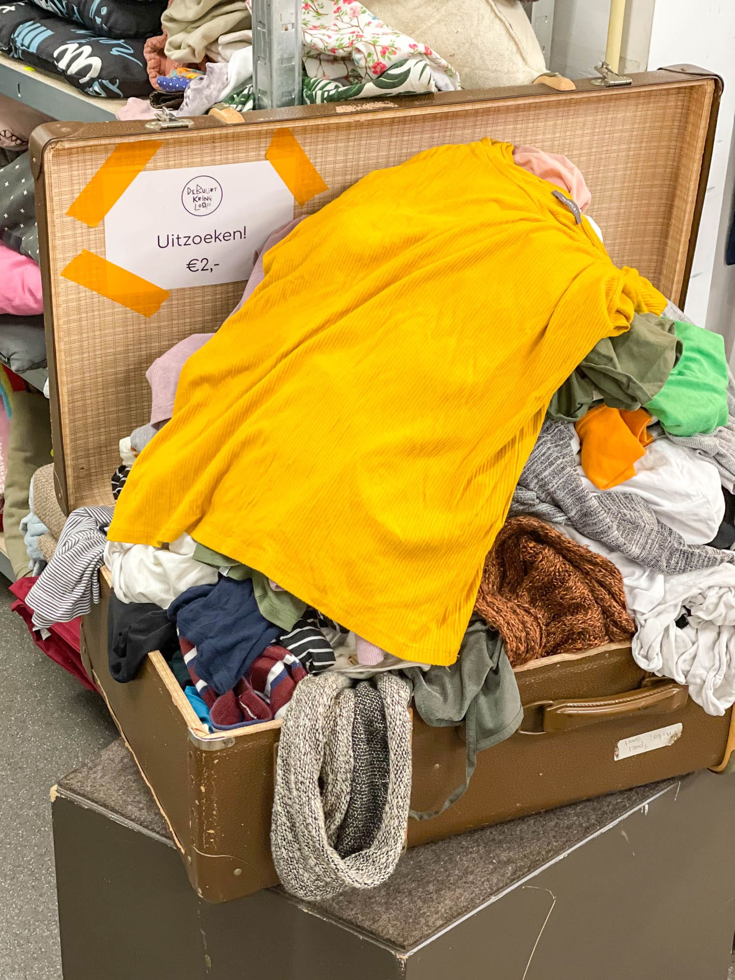 Op een industrieterrein in Amsterdam West vind je een grote loods die tot de nok toe gevuld is met tweedehands goederen. Van keukengerei tot spullen voor de wintersport. En rijen met boeken en rekken vol kleding. Ik kan mij hier uren vermaken en als ik niet oppas, ga ik met armenvol pareltjes de deur uit. Check je vondsten wel even voor je gaat afrekenen. Vooral bij de kleding zijn er best wat items met vlekken en beschadigingen. Ik scoorde een mooie korte winterjas van Tommy Hilfiger voor 20 euro. Mijn vriend ging weg met twee truien en was daarvoor slechts 5 euro kwijt.