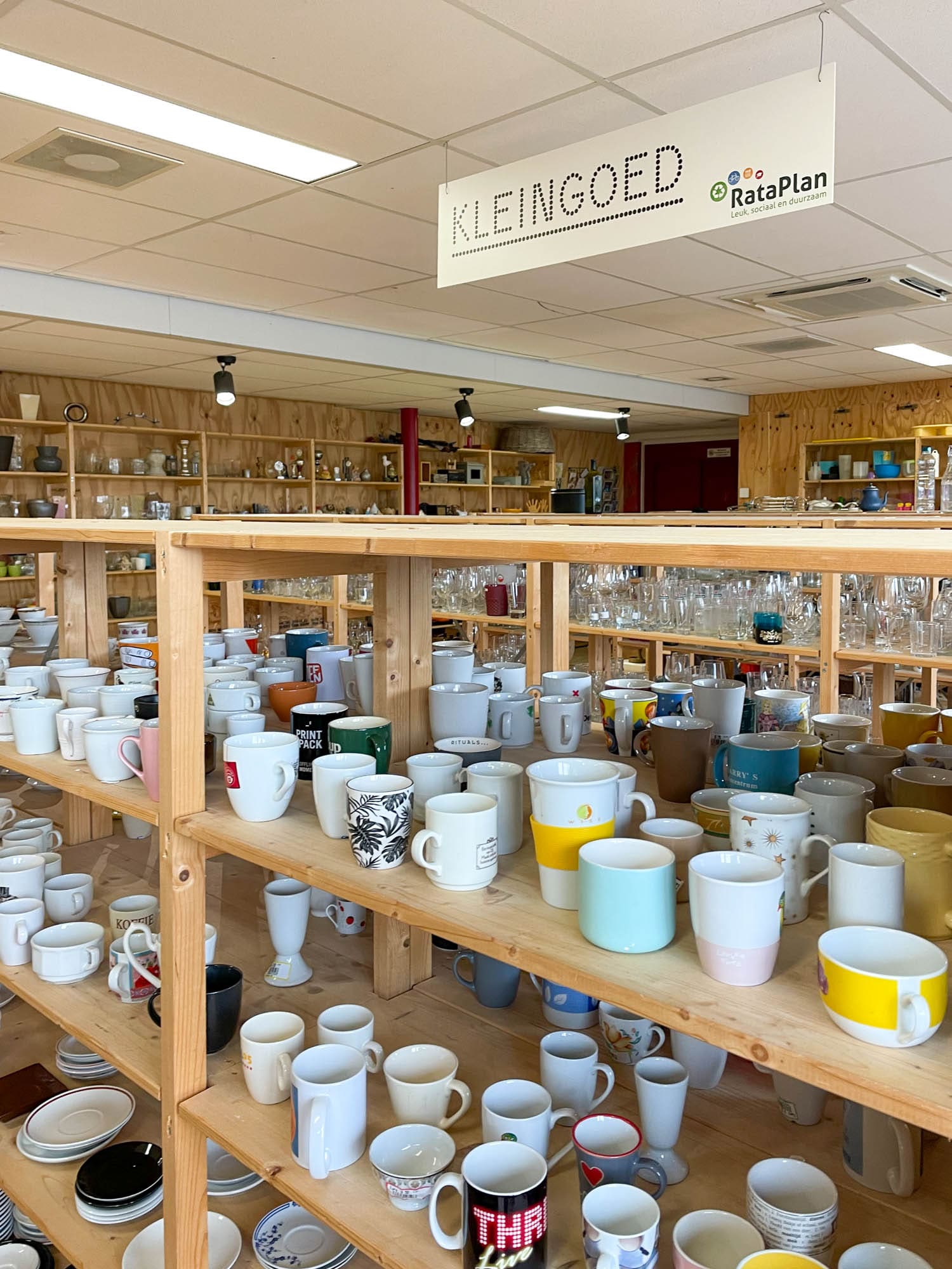 Vlakbij de Westergasfabriek vind je een vestiging van de kringloopketen Rataplan. Toegegeven, het is niet mijn favoriete vestiging. Het is er vaak erg rommelig en ze hebben niet de allermooiste collectie. Toch kun je hier met een beetje mazzel goed slagen. Op de begane grond snuffel je tussen de boeken en platen, op de eerste verdieping vind je vooral kleding (dames, heren en kids) en op de bovenste etage neem je een kijkje bij serviesgoed, elektrische apparaten, speelgoed en kleine interieur accessoires. Voor een dikke winterjas van Maison Scotch betaalde ik 16 euro. Een kinderjurkje van Sissy Boy mocht ik voor nog geen 3 euro meenemen.