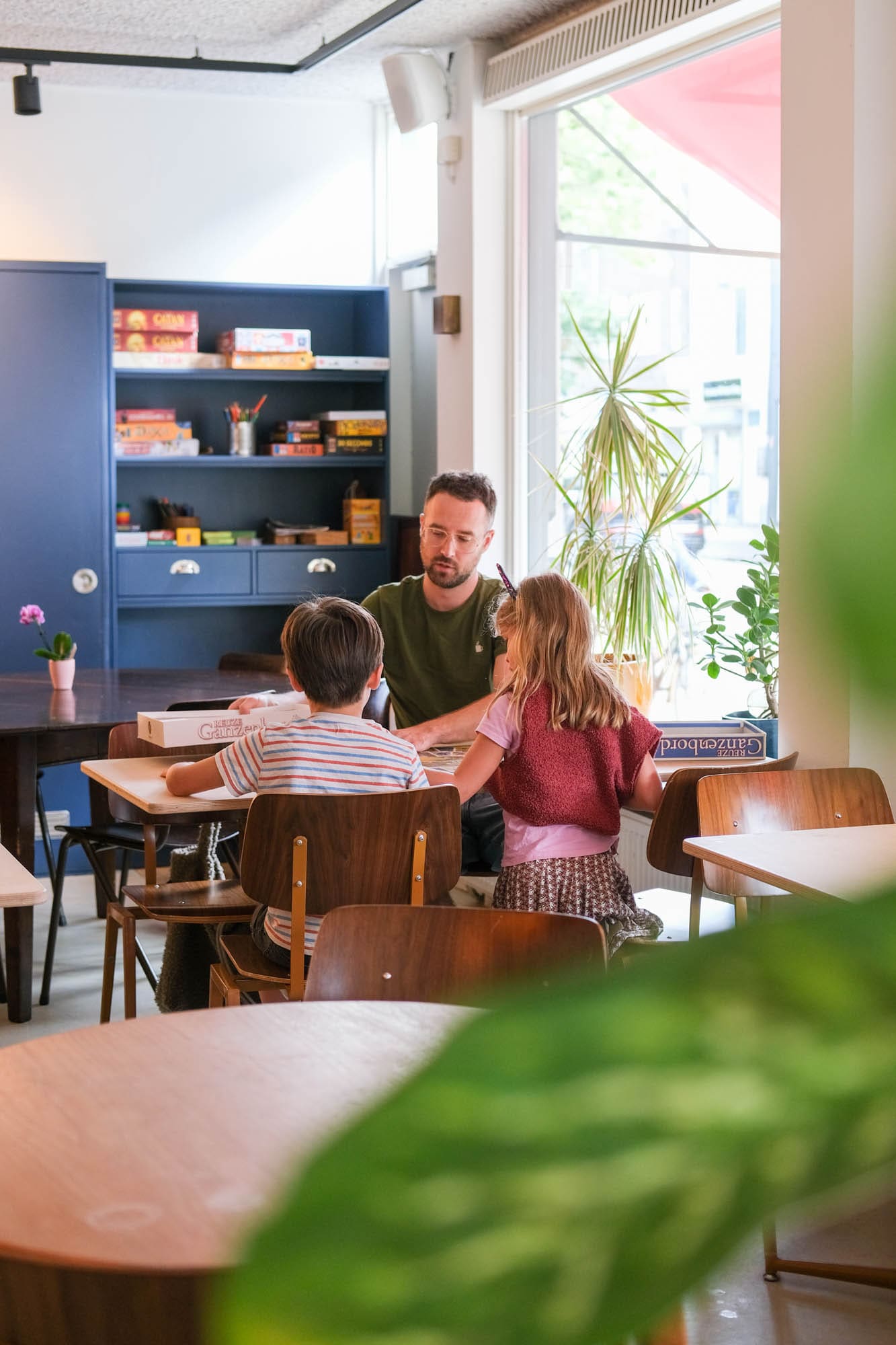 In het restaurant vind je geen kinderhoek met speelgoed en verkleedkleren. Toch is dit zeker wel een kidsproof restaurant. In de hoek van het restaurant aan de Amsterdamsestraatweg staat een spelletjeskast vol met leuke bordspellen en kaartspellen. Zo speelden wij tussen de gangen door ganzenbord, 30 Seconds en een potje pesten.